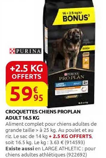 Découvrez une offre exceptionnelle sur les croquettes ProPlan Adult pour chiens de grande taille, spécialement formulées pour répondre aux besoins nutritionnels des animaux pesant plus de 25 kg. Avec un sac de 16.5 kg, vous offrez à votre compagnon une alimentation de qualité au poulet et au riz, garantissant santé et énergie.