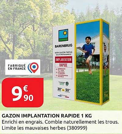 Si vous cherchez à redonner vie à votre jardin ou à combler les espaces nus de votre pelouse, l'offre sur le Gazon Implantation Rapide 1 kg de la marque Barenbrug est faite pour vous. Ce produit, enrichi en engrais, est conçu pour assurer un résultat optimal tout en étant très facile à utiliser. Que vous soyez un jardinier amateur ou un professionnel, cette solution est idéale pour avoir un espace extérieur verdoyant rapidement.