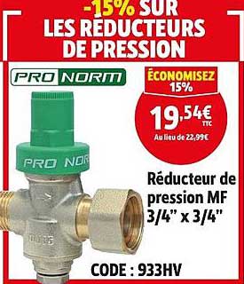 Découvrez une réduction exceptionnelle sur les réducteurs de pression Pro Norm ! Ce produit incontournable assure un contrôle optimal de la pression de l'eau dans votre plomberie, garantissant ainsi sécurité et performance. Profitez de cette offre valable jusqu'au 2 novembre 2025.