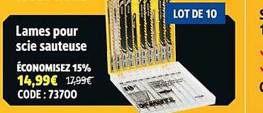 Profitez d'une excellente opportunité avec cette promotion sur un lot de lames pour scie sauteuse. Pendant la période du 3 novembre au 2 décembre 2025, vous pouvez bénéficier d'une réduction de 15 % sur ce produit essentiel pour vos travaux de bricolage. Que vous soyez amateur ou professionnel, ce lot va vous séduire par sa qualité et son efficacité.
