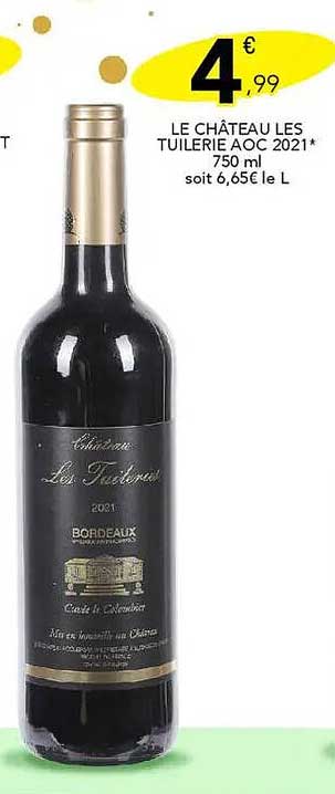 Découvrez dès maintenant la offre LE CHÂTEAU LES TUILERIE AOC 2021* dans le catalogue de Stokomani. Cette offre est valable du 04/12/2024 au 24/12/2024.