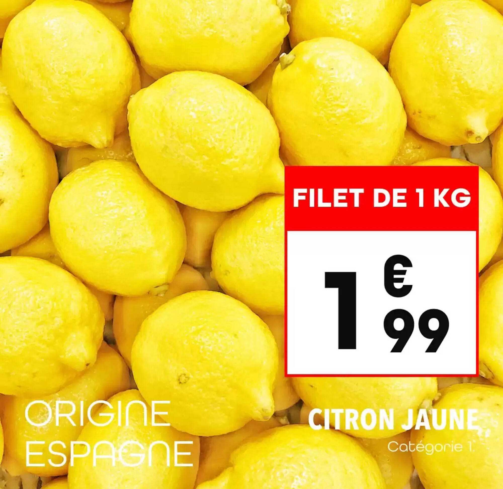Découvrez dès maintenant la offre Filet de 1 kg de citron jaune dans le catalogue de Supeco. Cette offre est valable du 09/04/2025 au 15/04/2025.