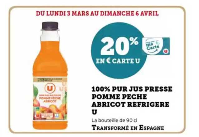 Normalement, ce produit est proposé à un prix attractif, mais avec la promotion actuelle, vous pouvez réaliser des économies intéressantes grâce à la réduction de 20% en Carte U. C'est le moment idéal pour remplir votre réfrigérateur avec ce jus savoureux à un prix encore plus compétitif.
