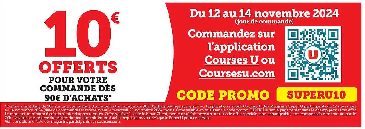 Offre de 10€ Offerts Pour Votre Commande Dès 90€ D'achats* chez Super U