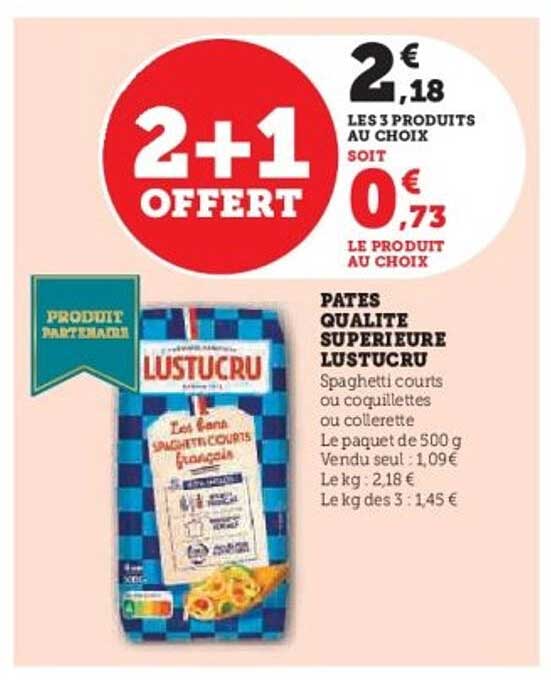 Découvrez une offre exceptionnelle sur les pâtes de qualité supérieure Lustucru. Pendant la période du 4 au 16 novembre 2025, profitez d'une promotion spéciale : pour l'achat de 3 produits au choix, le dernier est offert ! Un excellent moyen de faire des économies tout en régalant toute la famille avec des plats savoureux.