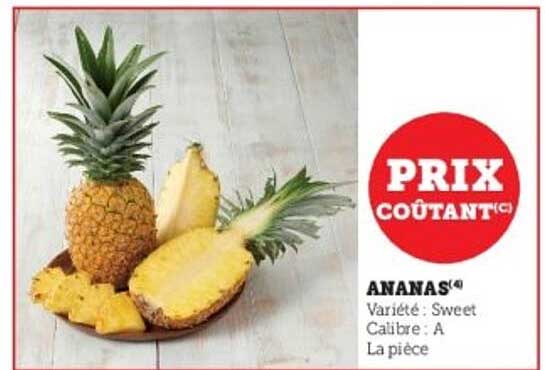 Avec un tarif indiqué comme prix coûtant, cette offre est particulièrement attractive. Il n'y a pas de précédent prix affiché, mais cette démarche de prix brut vous permet de savourer votre ananas sans vous ruiner.