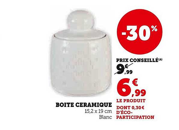 Découvrez la boîte céramique élégante et pratique, parfaite pour organiser vos petits objets du quotidien. Cette offre exceptionnelle à -30% vous permet de l'acquérir à un prix réduit, idéal pour ajouter une touche décorative à votre intérieur.