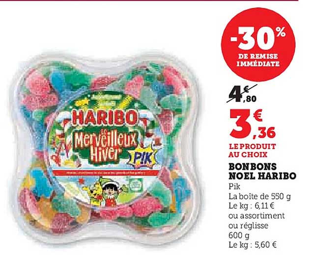 Découvrez l'offre de Bonbons Noel Haribo chez Super U! Cette offre fantastique est maintenant disponible dans le nouveau catalogue de Super U. Profitez de cette occasion et économisez considérablement sur votre achat.