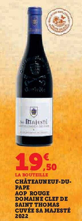 Découvrez l'offre de Châteauneuf-Du-Pape Aop Rouge Domaine Clef De Saint Thomas Cuvée Sa Majesté 2022 chez Super U! Cette offre fantastique est maintenant disponible dans le nouveau catalogue de Super U. Profitez de cette occasion et économisez considérablement sur votre achat.