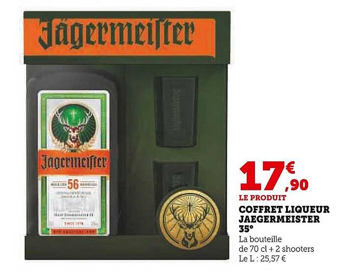 Découvrez dès maintenant la offre COFFRET LIQUEUR JAEGERMEISTER 35° dans le catalogue de Super U. Cette offre est valable du 12/11/2025 au 24/12/2025.