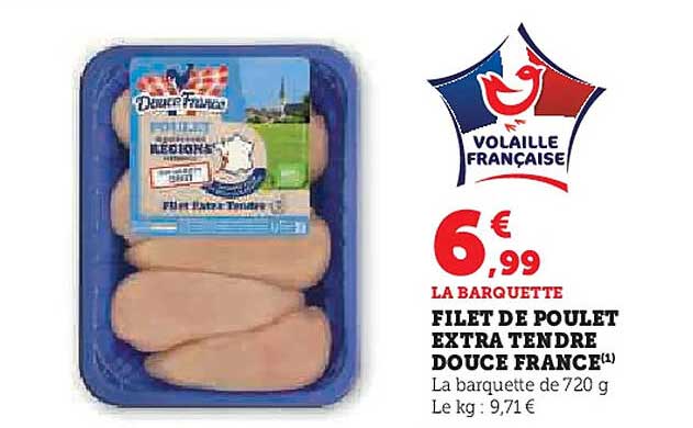Découvrez une offre exceptionnelle sur le savoureux filet de poulet extra tendre de Douce France. Cette promotion vous permet de savourer un produit de qualité, idéal pour préparer des plats variés et gourmands. Que ce soit pour un dîner en famille ou un repas entre amis, c'est la pièce maîtresse qui saura régaler tous vos convives.