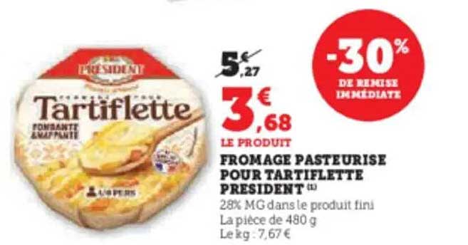 Offre de Fromage Pasteurise Pour Tartiflette President chez Super U