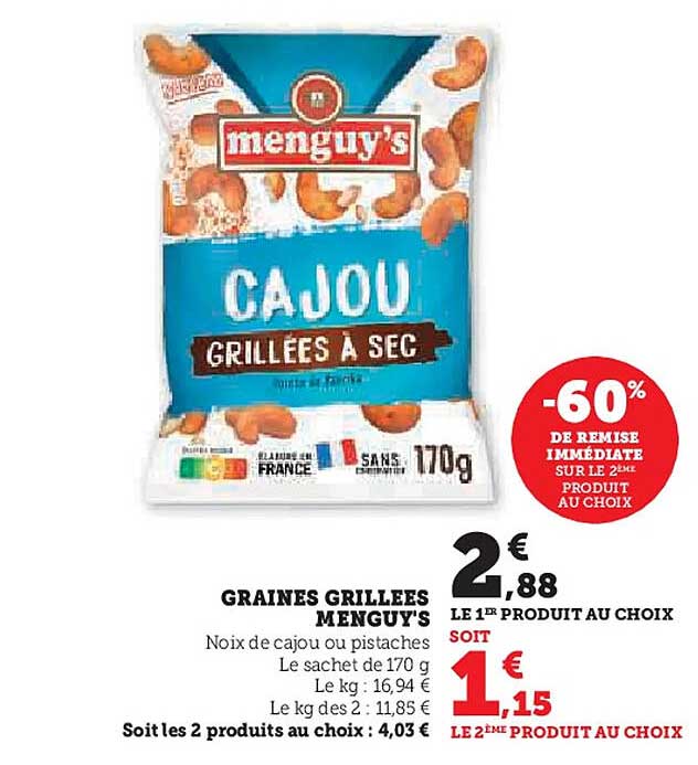 Découvrez l'offre de Graines Grillees Menguy's chez Super U! Cette offre fantastique est maintenant disponible dans le nouveau catalogue de Super U. Profitez de cette occasion et économisez considérablement sur votre achat.