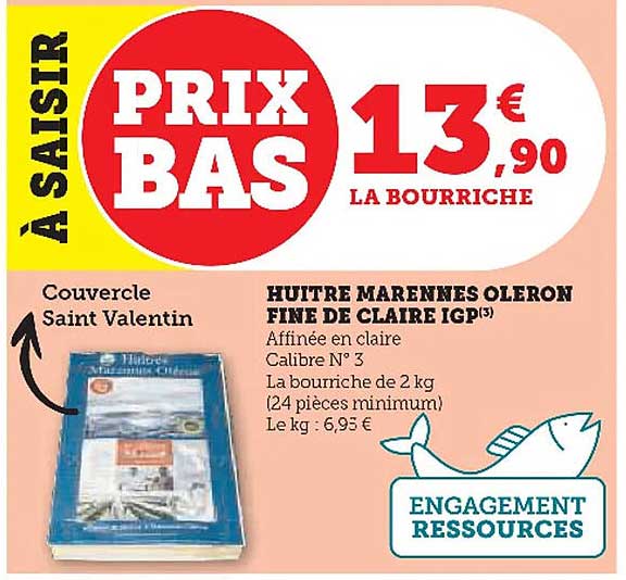 Découvrez l'offre de Huitre Marennes Oleron Fine De Claire Igp chez Super U! Cette offre fantastique est maintenant disponible dans le nouveau catalogue de Super U. Profitez de cette occasion et économisez considérablement sur votre achat.
