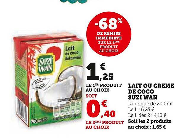 Offre de Lait Ou Creme De Coco Suzi Wan chez Super U