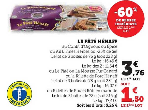 Découvrez une promotion irrésistible sur le célèbre Pâté Hénaff, un incontournable pour tous les amateurs de charcuterie. Issu des traditions bretonnes, ce pâté est à la fois savoureux et authentique. Ce produit est parfait pour vos apéritifs entre amis ou vos repas en famille. Profitez de cette occasion pour faire le plein de saveurs en vous rendant ici.