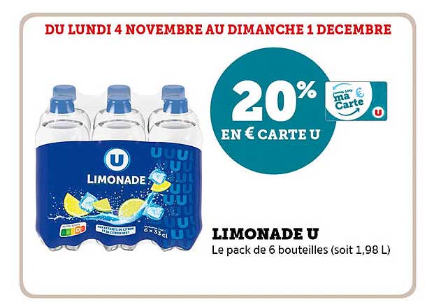 Découvrez dès maintenant la offre LIMONADE U dans le catalogue de Super U. Cette offre est valable du 04/11/2024 au 01/12/2024.