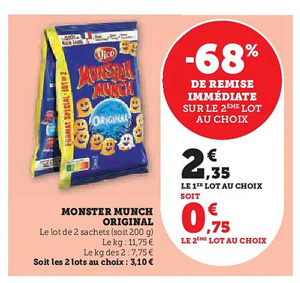 Découvrez l'offre de Monster Munch Original chez Super U! Cette offre fantastique est maintenant disponible dans le nouveau catalogue de Super U. Profitez de cette occasion et économisez considérablement sur votre achat.