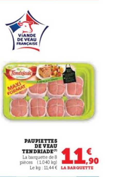 Découvrez dès maintenant la offre PAUPIETTES DE VEAU TENDRIADE® dans le catalogue de Super U. Cette offre est valable du 01/10/2024 au 13/10/2024.