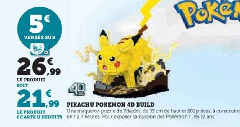 Découvrez dès maintenant la offre PIKACHU POKEMON 4D BUILD dans le catalogue de Super U. Cette offre est valable du 21/10/2025 au 07/12/2025.