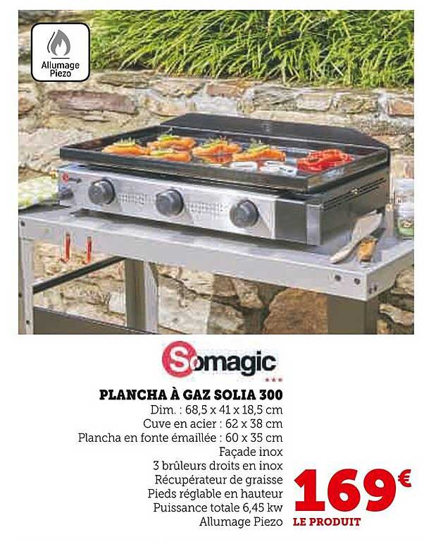 Affichée à seulement 169€, la plancha à gaz Solia 300 représente un excellent rapport qualité-prix par rapport à d'autres modèles sur le marché. En comparaison avec un prix habituel plus élevé pour des appareils de cette qualité, cette offre est à ne pas manquer, surtout pour les passionnés de cuisine d'extérieur.