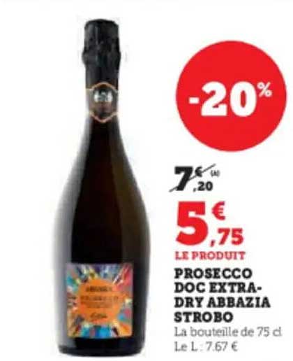 Offre de Prosecco Doc Extra-Dry Abbazia Strobo chez Super U