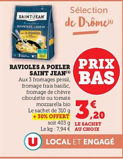 Découvrez l'offre de Ravioles A Poeler Saint Jean chez Super U! Cette offre fantastique est maintenant disponible dans le nouveau catalogue de Super U. Profitez de cette occasion et économisez considérablement sur votre achat.