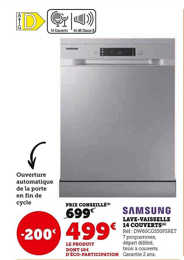 Découvrez l'offre de Samsung Lave-Vaisselle 14 Couverts chez Super U! Cette offre fantastique est maintenant disponible dans le nouveau catalogue de Super U. Profitez de cette occasion et économisez considérablement sur votre achat.