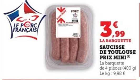 Découvrez dès maintenant la offre SAUCISSE DE TOULOUSE PRIX MINI dans le catalogue de Super U. Cette offre est valable du 21/10/2025 au 02/11/2025.