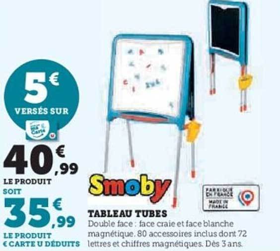 Vous recherchez un outil ludique et éducatif pour stimuler la créativité de vos enfants ? Ne cherchez plus ! Le tableau tubes Smoby est l'accessoire idéal pour éveiller l'imagination et le sens artistique des petits. Avec cette offre, offrez-leur un espace pour dessiner, écrire et apprendre tout en s'amusant !