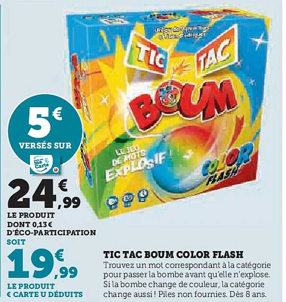 Découvrez la superbe offre de Tic Tac Boum Color Flash dans le nouveau catalogue de Super U. En plus de cette offre, vous trouverez de nombreuses autres réductions attrayantes. Vous pouvez facilement commander le Tic Tac Boum Color Flash en ligne via le site web de Super U ou l'acheter dans un magasin près de chez vous.