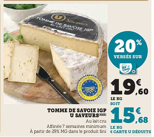 Découvrez dès maintenant la offre TOMME DE SAVOIE IGP U SAVEURS dans le catalogue de Super U. Cette offre est valable du 15/04/2025 au 21/04/2025.