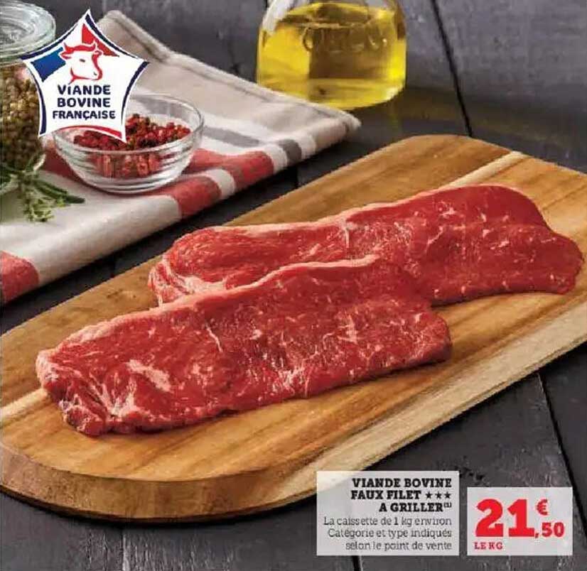 Amoureux de la grillade, cette offre est faite pour vous ! Le faux filet, une pièce de viande savoureuse et tendre, est parfait pour des moments conviviaux autour du barbecue. Profitez de cette promotion pour savourer une viande de qualité, issue de l'élevage français, qui ravira les palais des petits comme des grands.