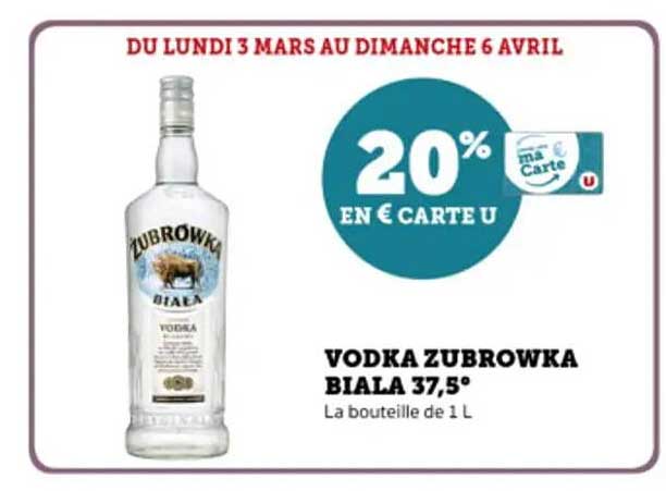 Découvrez l'offre de Vodka Zubrowka Biala 37,5° chez Super U! Cette offre fantastique est maintenant disponible dans le nouveau catalogue de Super U. Profitez de cette occasion et économisez considérablement sur votre achat.