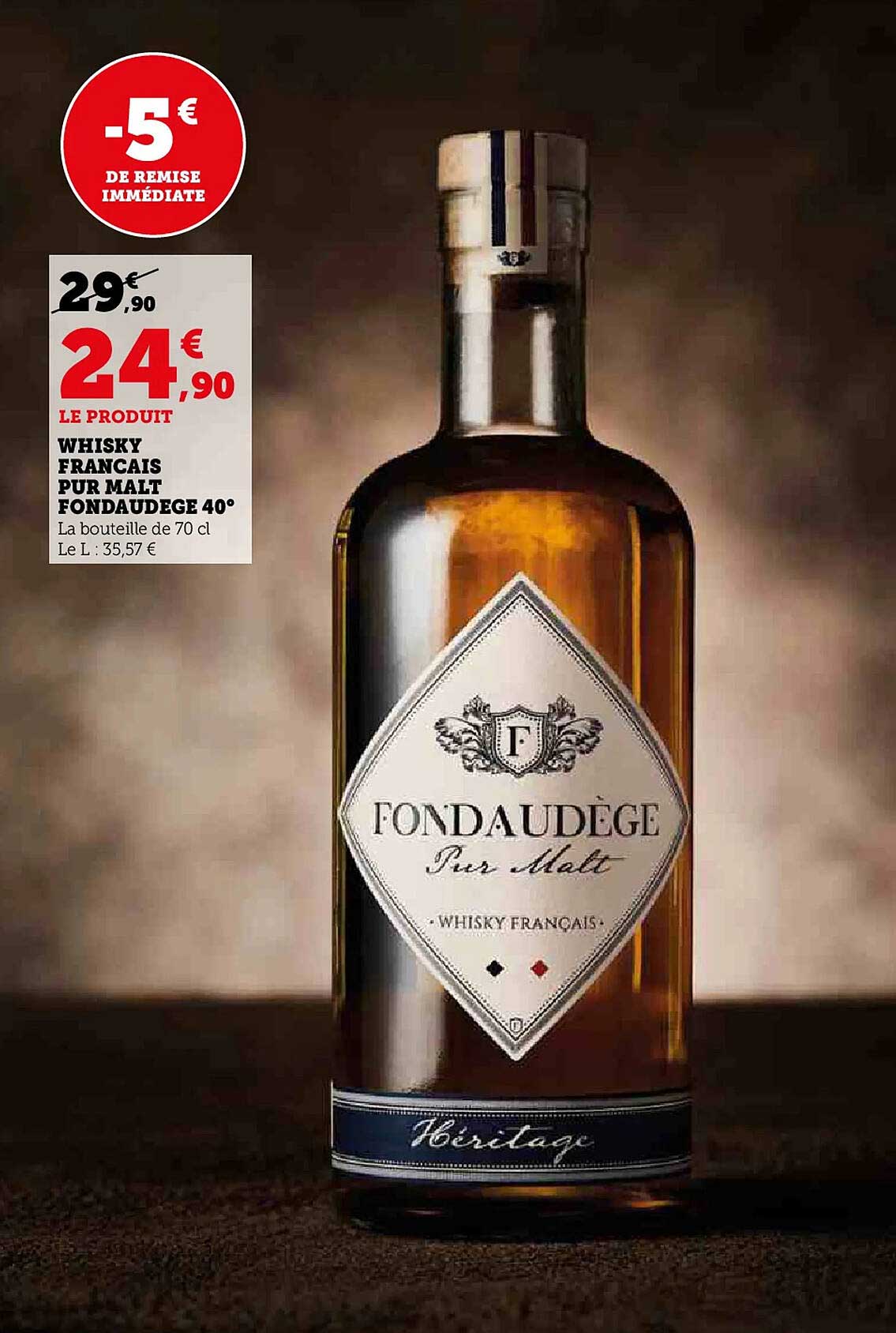 Découvrez l'offre de Whisky Francais Pur Malt Fondaudege 40° chez Super U! Cette offre fantastique est maintenant disponible dans le nouveau catalogue de Super U. Profitez de cette occasion et économisez considérablement sur votre achat.