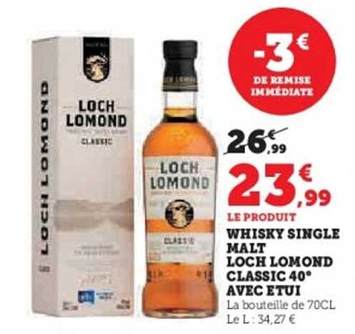 Si vous êtes amateur de whisky, ne manquez pas cette promotion exceptionnelle sur le Loch Lomond Classic ! Avec son goût riche et complexe, ce single malt est une véritable invitation au voyage en Écosse. Alors, pourquoi ne pas en profiter maintenant ?