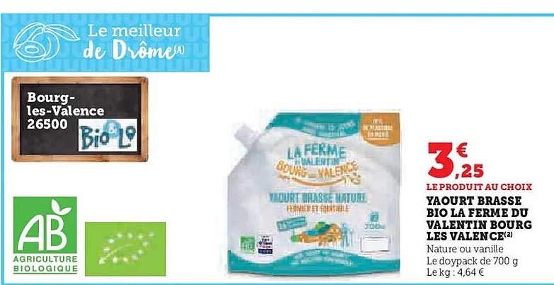 Offre de Yaourt Brassé Bio La Ferme Du Valentin Bourg Les Valence chez Super U