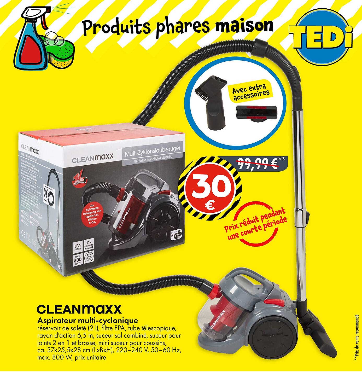Découvrez dès maintenant la offre Aspireteur multi-cyclonique CLEANmaxx dans le catalogue de TEDi. Cette offre est valable du 03/09/2025 au 07/09/2025.
