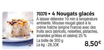 Découvrez dès maintenant la offre 4 Nougats glacés dans le catalogue de Thiriet. Cette offre est valable du 20/03/2025 au 10/04/2025.