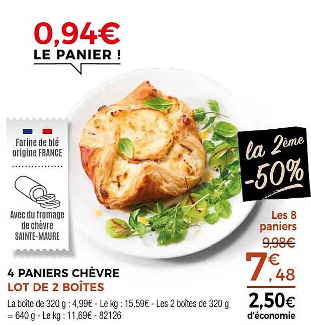 Vous cherchez à ajouter un peu de saveur à vos repas ? La promotion actuelle sur les paniers de chèvre de Thiriet est parfaite pour vous ! À seulement 0,94€ le panier, cette offre vaut le détour. Que ce soit pour un apéritif, un plat principal, ou une collation gourmande, ces petits délices sont un vrai régal.