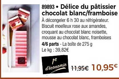 Découvrez dès maintenant la offre Délice du pâtissier chocolat blanc/framboise dans le catalogue de Thiriet. Cette offre est valable du 20/03/2025 au 10/04/2025.