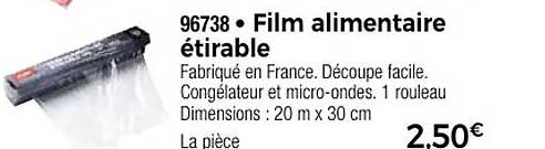 Le film est conçu avec des dimensions pratiques de 20 m x 30 cm, offrant une excellente couverture pour vos récipients. Sa fabrication en France témoigne d'un engagement envers des normes de qualité élevées, tout en soutenant l'économie locale.