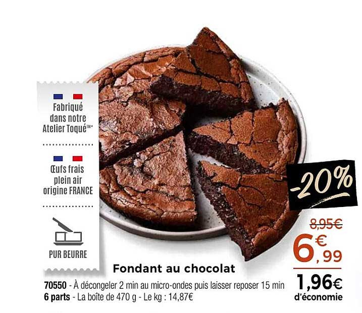 Ce fondant de 470 g est fabriqué en France, garantissant une qualité supérieure. Chaque portion est riche en goût et fondante, parfaite pour un moment de plaisir. De plus, il est fabriqué avec des ingrédients de haute qualité, sans compromis.