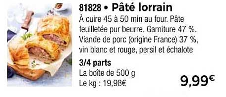 Actuellement proposé à seulement 9,99 €, ce pâté constitue un excellent rapport qualité-prix, comparé au prix habituel de 19,98 € le kg. Profitez de cette offre pour remplir votre table de gourmandise sans vous ruiner !