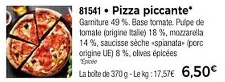 Vous cherchez un repas savoureux et pratique ? La pizza piccante est faite pour vous ! Avec une garniture riche et délicieuse, cette pizza réunit tous les ingrédients pour satisfaire vos envies gourmandes. Que ce soit pour un dîner entre amis ou un repas rapide en solo, elle est la solution idéale.