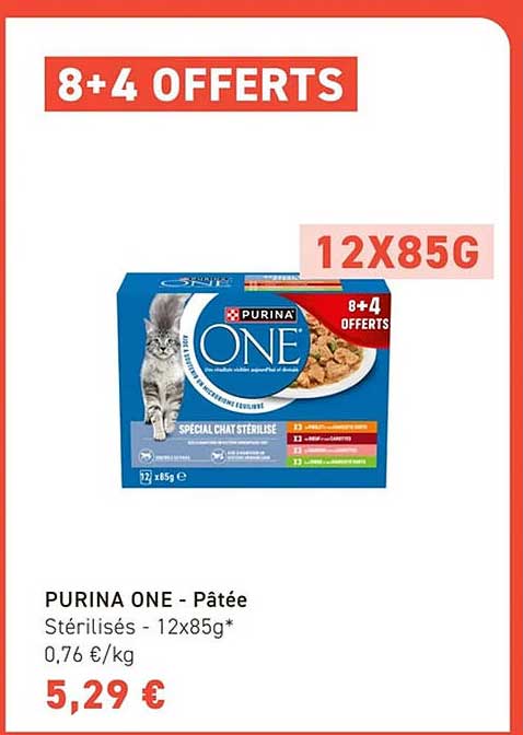 Vous cherchez la meilleure nutrition pour votre chat tout en faisant des économies ? Découvrez cette offre exceptionnelle sur la pâtée PURINA ONE, spécialement conçue pour répondre aux besoins des chats stérilisés. Avec 12 x 85g, vous bénéficiez de 4 portions gratuites, ce qui fait de cette offre une opportunité à ne pas manquer !