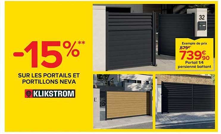 Vous recherchez à moderniser l'entrée de votre propriété ? La promotion actuelle sur les portails et portillons Neva est l'occasion parfaite de le faire. Avec une réduction de 15 %, vous pouvez bénéficier de matériaux de qualité à un prix accessible, tout en embellissant votre espace extérieur.