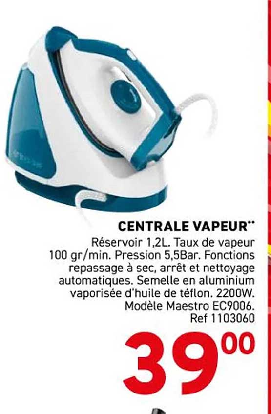 Proposée à seulement 39,00€, cette centrale vapeur représente un excellent rapport qualité-prix. En comparaison avec d'autres modèles du marché, dont les prix peuvent atteindre le double, cette offre vous permet de réaliser des économies tout en profitant d'un produit haut de gamme.