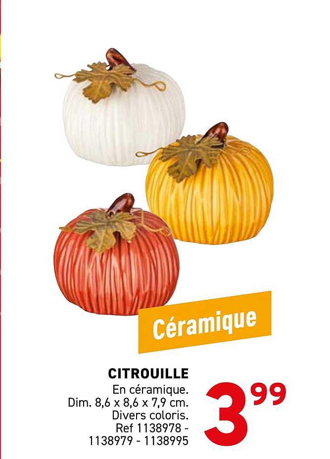 Actuellement, la citrouille est proposée au prix attractif de 3,99 €, permettant une belle économie par rapport au prix habituel des articles décoratifs de cette qualité. Ne manquez pas cette opportunité de faire l'acquisition d'un objet tendance, tout en restant dans votre budget !