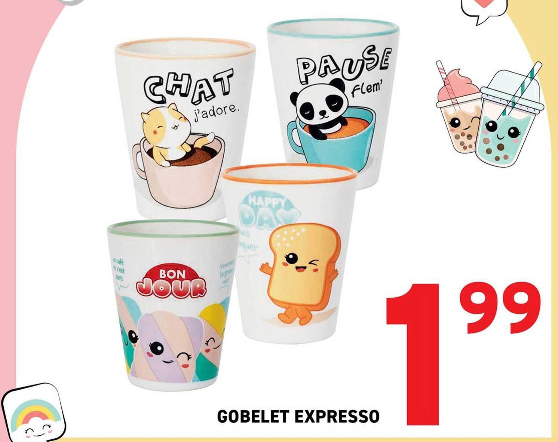 Découvrez notre gobelet expresso au design ludique et coloré, parfait pour ajouter une touche de joie à vos pauses café. Chaque gobelet présente des motifs adorables, tels que des animaux mignons et des messages amusants. À seulement 1,99€, il est difficile de résister à cette offre qui ravira à la fois les petits et les grands.